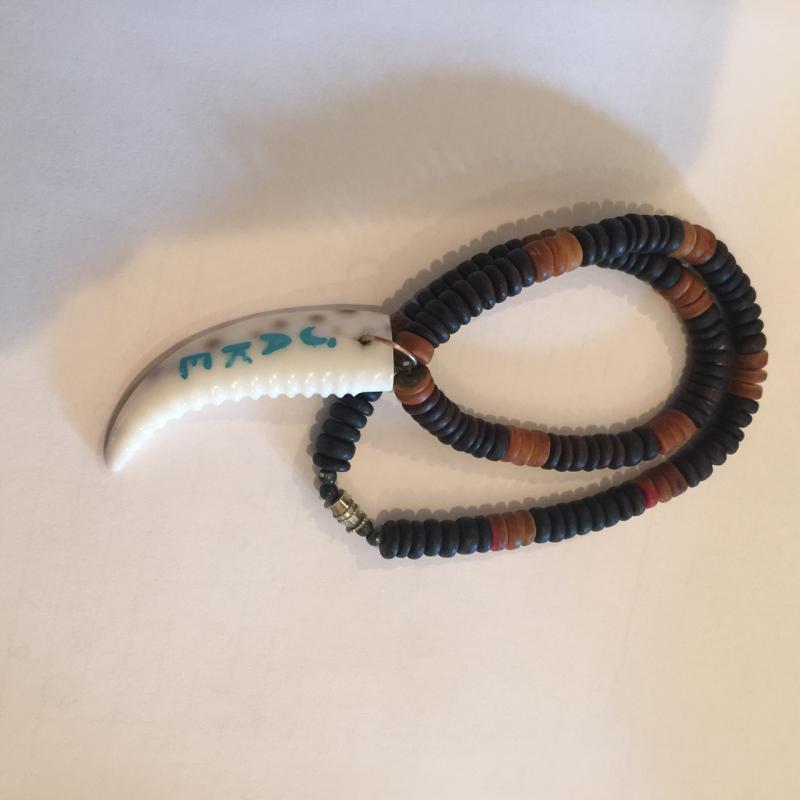 Here is the Necklace Jake Gave me. I painted "jake" on the unkown shell/tooth charm.